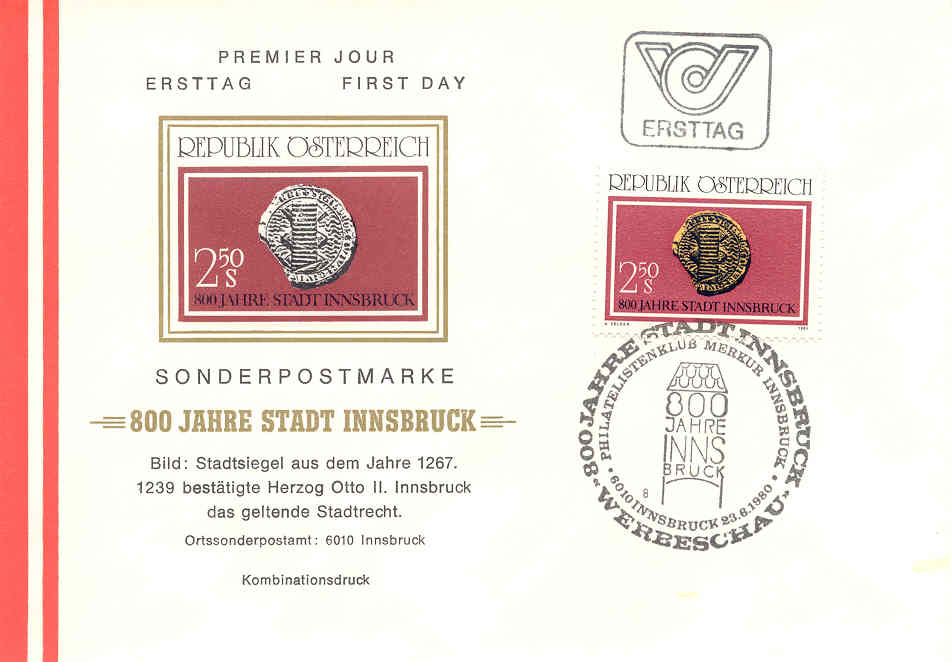 Im Jahre 1980 feierte man 800 Jahre Stadt Innsbruck.